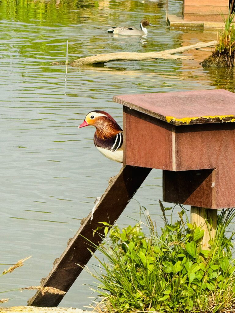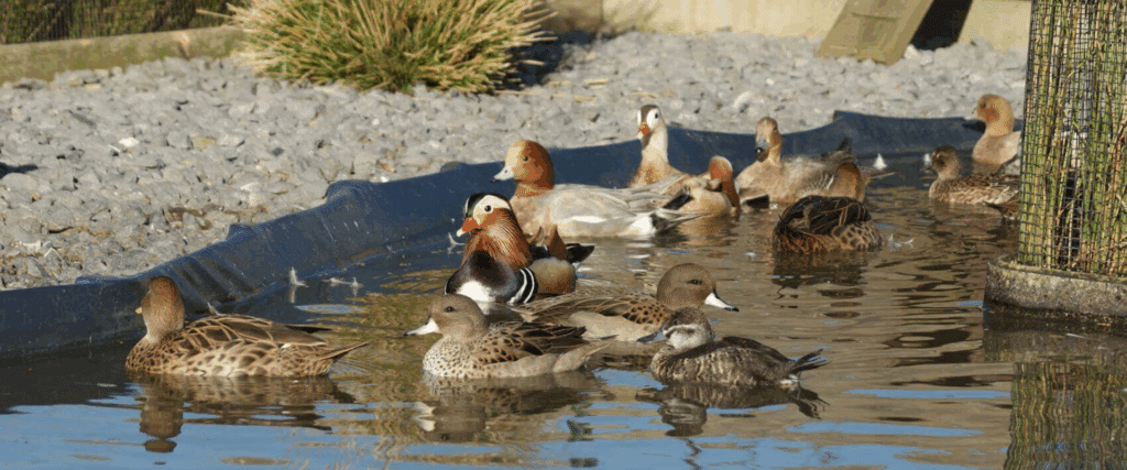 • Des petits canards vifs et gracieux, comme les mandarins (Aix galericulata) et carolins (Aix sponsa), recherchรฉs pour leurs couleurs vives et leur comportement paisible.