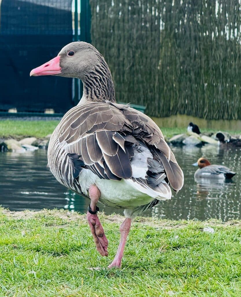 • Oie cendrรฉe (Anser anser) : la plus grande et la plus familiรจre des oies europรฉennes. Cโ€™est รฉgalement lโ€™ancรชtre de lโ€™oie domestique. Son plumage gris cendrรฉ et son bec rosรฉ la distinguent facilement. Espรจce rustique, elle se reproduit volontiers en captivitรฉ.