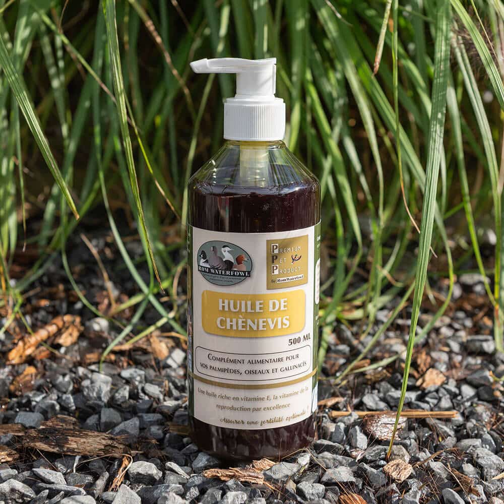 C’est une huile 100% naturelle, riche en omégas 3, 6 et 9, des acides gras essentiels que le canard ne peut pas synthétiser lui-même. Il faut donc apporter ces acides gras par l’alimentation pour un bon fonctionnement des cellules et de l’organisme.
