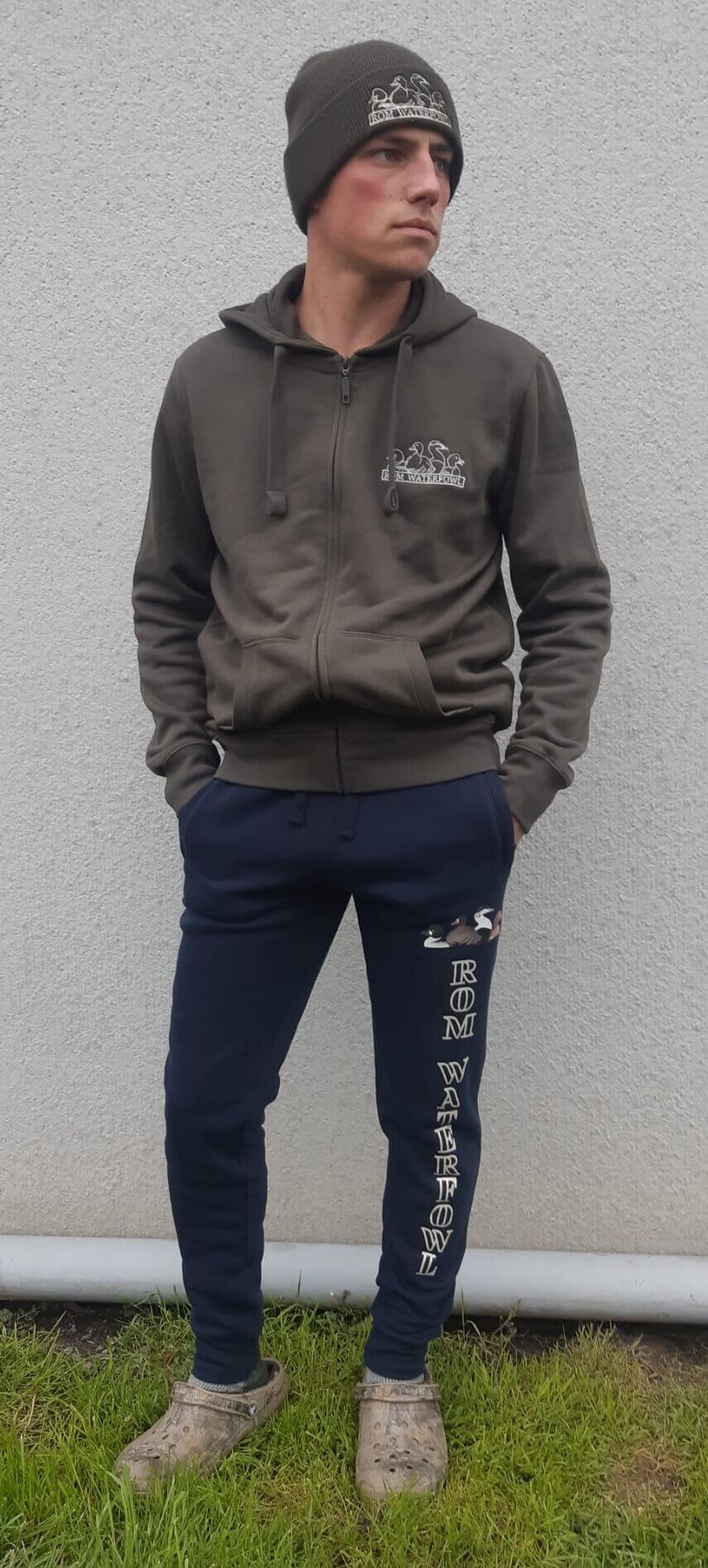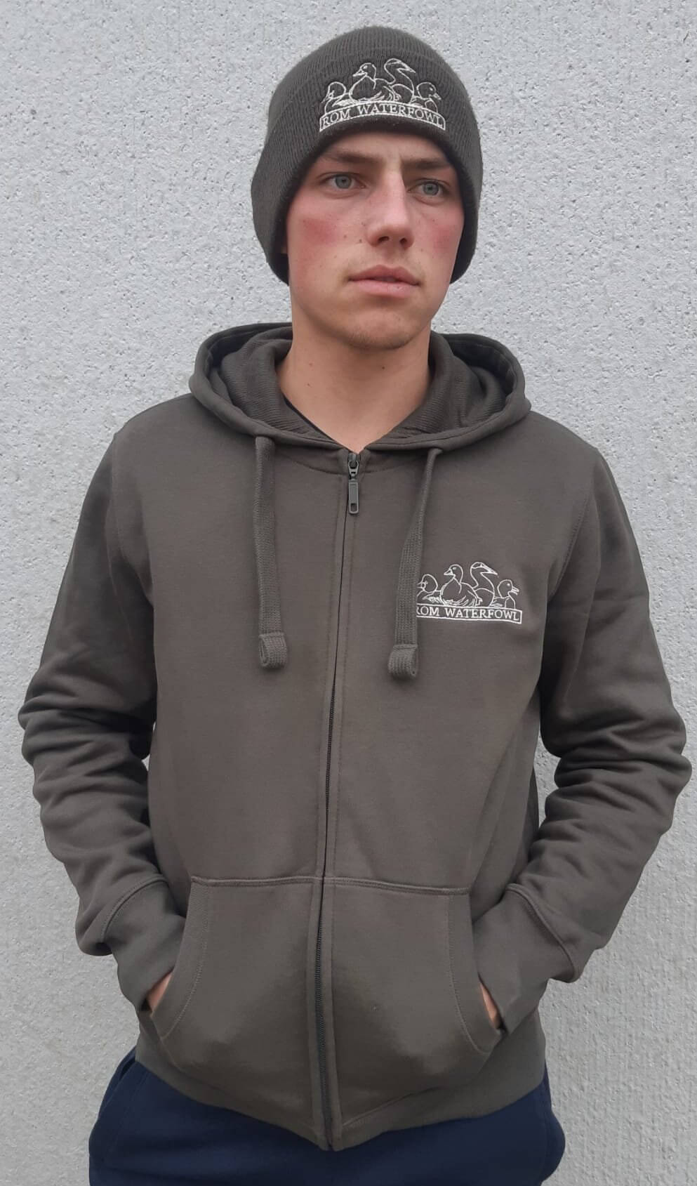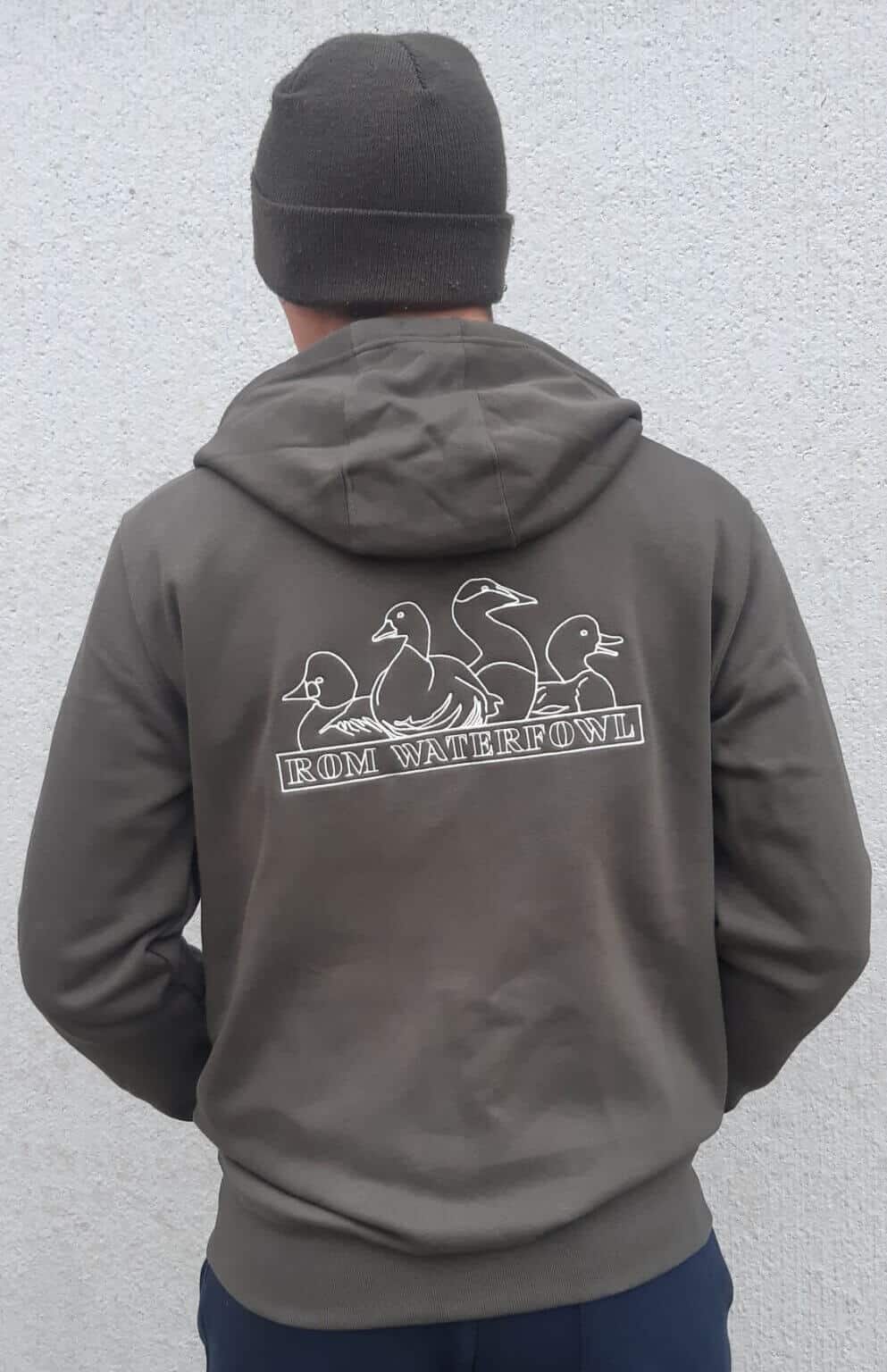 Sweat à capuche zippé unisexe kaki logoté Romwaterfowl.