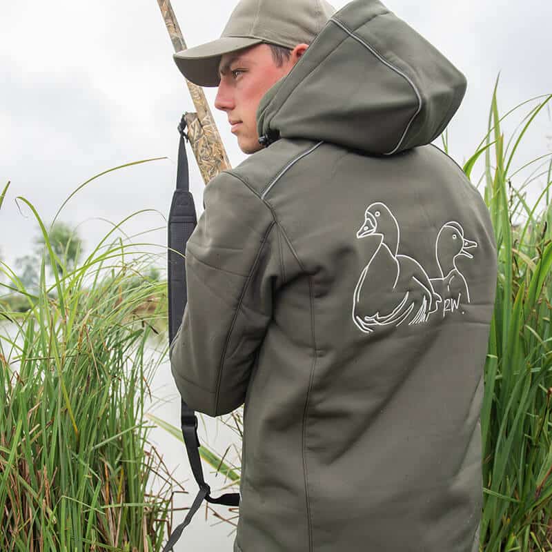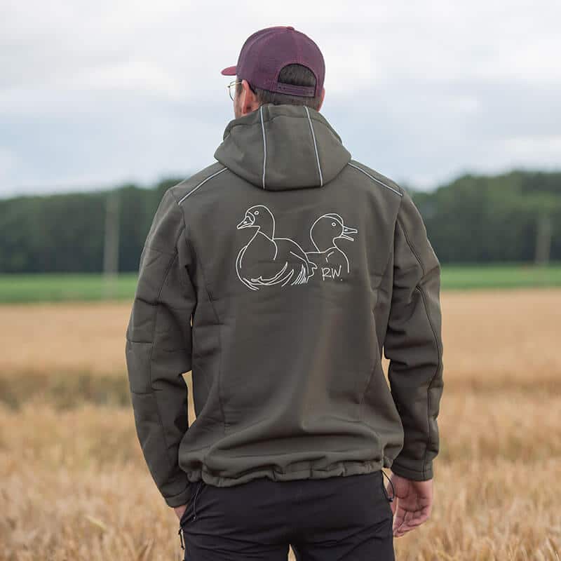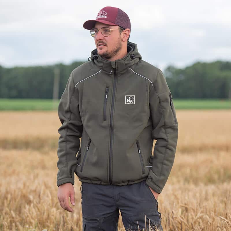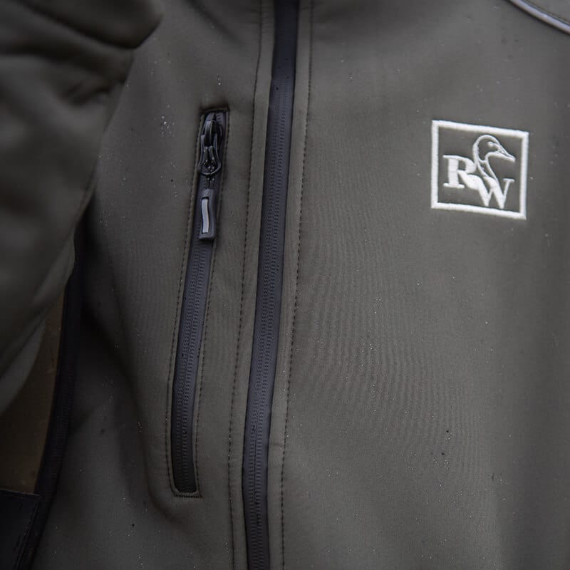 Veste technique softshell kaki coupe vent, respirante et impermรฉable. Logos RomWaterfowl 2024 sur le devant et dans le dos รฉgalement. Le top du top pour affronter tous les temps !