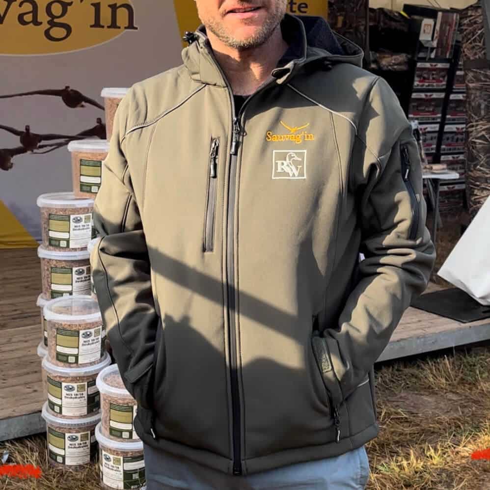 Veste technique softshell kaki coupe vent, respirante et imperméable. Logos RomWaterfowl 2024 sur le devant et dans le dos également. Le top du top pour affronter tous les temps !